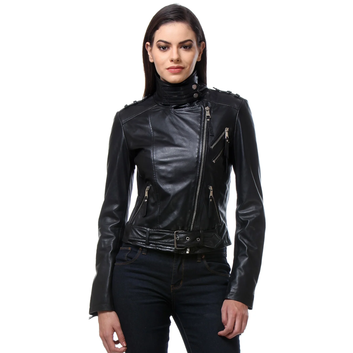 Elevate your style with the Black Full Sleeves cowhide Jacket by Brune & Bareskin, designed specifically for ladies. This sleek and sophisticated jacket features a modern design with practical elements, making it both stylish and functional. Crafted from high-quality cowhide, it offers a luxurious feel and lasting durability. The jacket includes a front zipper closure, zipper pockets for secure storage, and an adjustable waist belt for a tailored fit. Its full sleeves and classic black color ensure versatility, allowing you to effortlessly pair it with various outfits. Perfect for adding an edge to your everyday look or making a statement on a night out, this cowhide jacket is a must-have addition to any wardrobe.