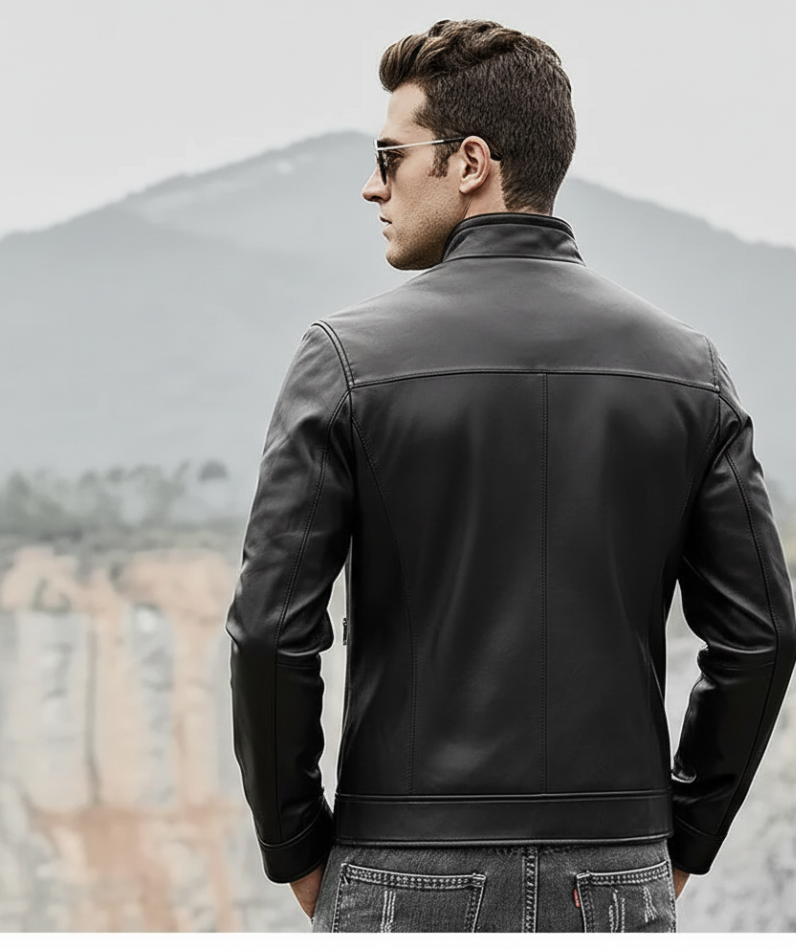 Imagine the feel of the supple black Cowhide jacket as you wear it for a night out in the city or a weekend gathering. The stylish stand collar and crisp silhouette provide an instant, effortlessly cool vibe. This jacket is versatile enough to be a staple piece, pairing perfectly with denim for a rugged look or dark trousers for a smart-casual ensemble. It’s an excellent gift for him—a piece of quality outerwear that he’ll wear for years to come.