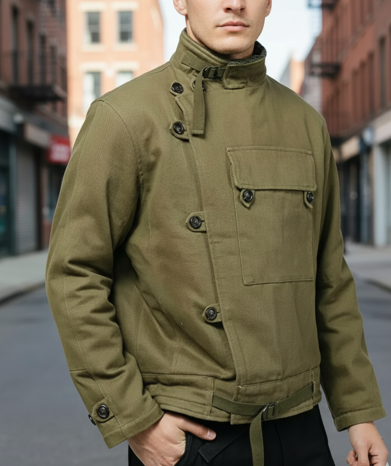 Embrace timeless utility and rugged style with this Vintage Swedish Army Jacket. This Men’s Military Cotton Winter Coat is directly inspired by the classic WW2 Tanker Jacket design, offering a unique blend of historical charm and modern practicality. Crafted from superior quality cotton and featuring a warm lining, this olive green jacket is the perfect outerwear for motorcycle riding, outdoor adventures, or simply staying warm and stylish during the colder months. It’s an ideal piece for history buffs and military apparel enthusiasts alike.